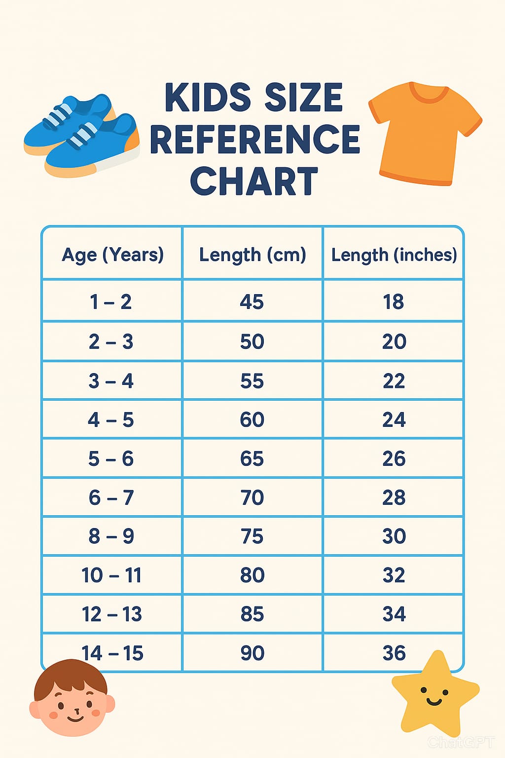 • Available in multiple sizes for ages 0–15 years
